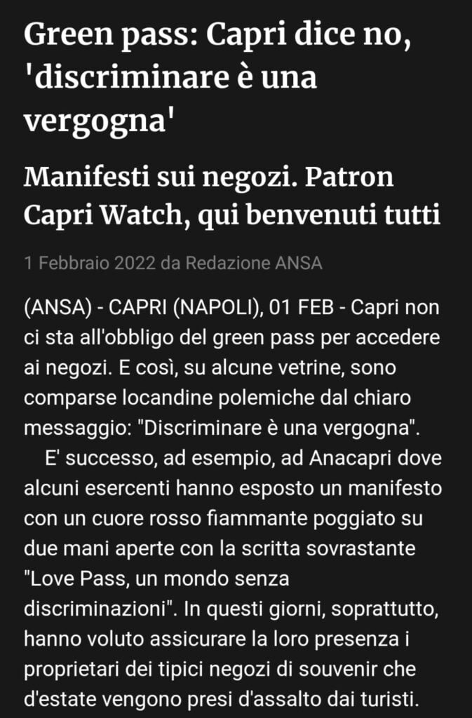 Il greenpass ha l’obiettivo di schiacciare gli opportunisti ai minimi livelli